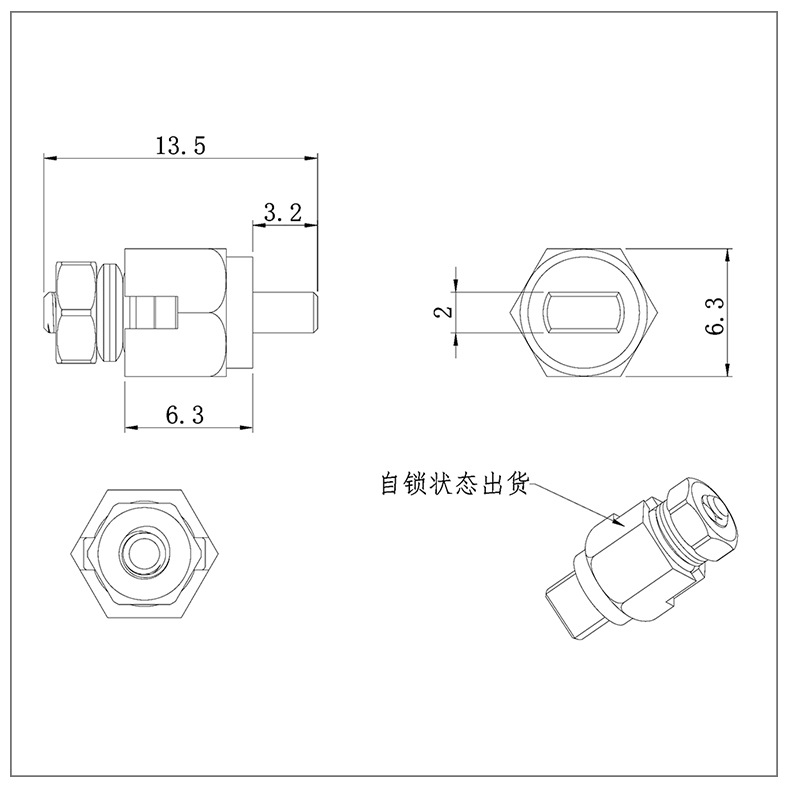 使用方法:台灯金属支架转轴的轴套为六边形,轴件铣扁,装配时从台灯活动关节一侧压入即可使用,轴件固定,轴套转动。