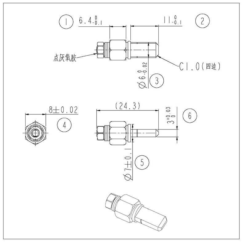 使用方法:折叠台灯转轴的轴套为六边形,轴件铣扁,装配时从台灯活动关节一侧压入即可使用,轴件固定,轴套转动。